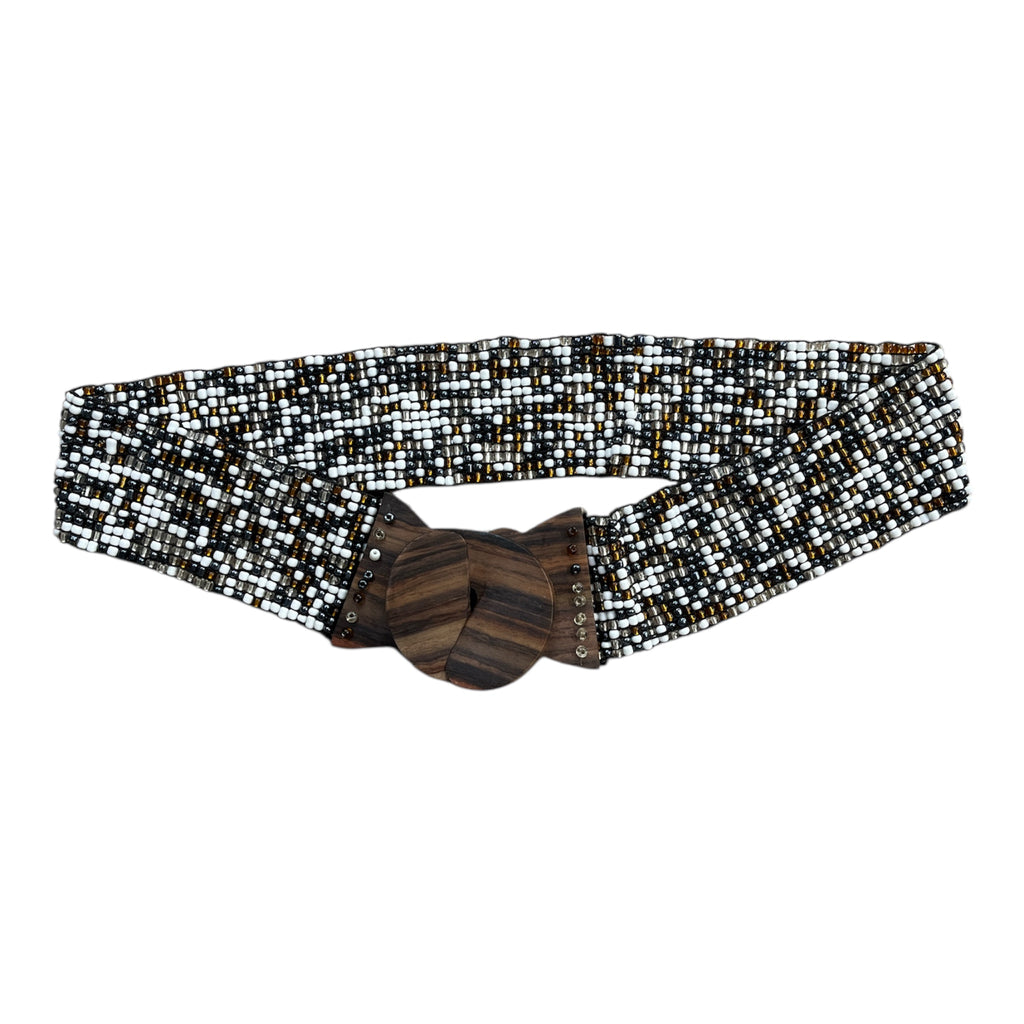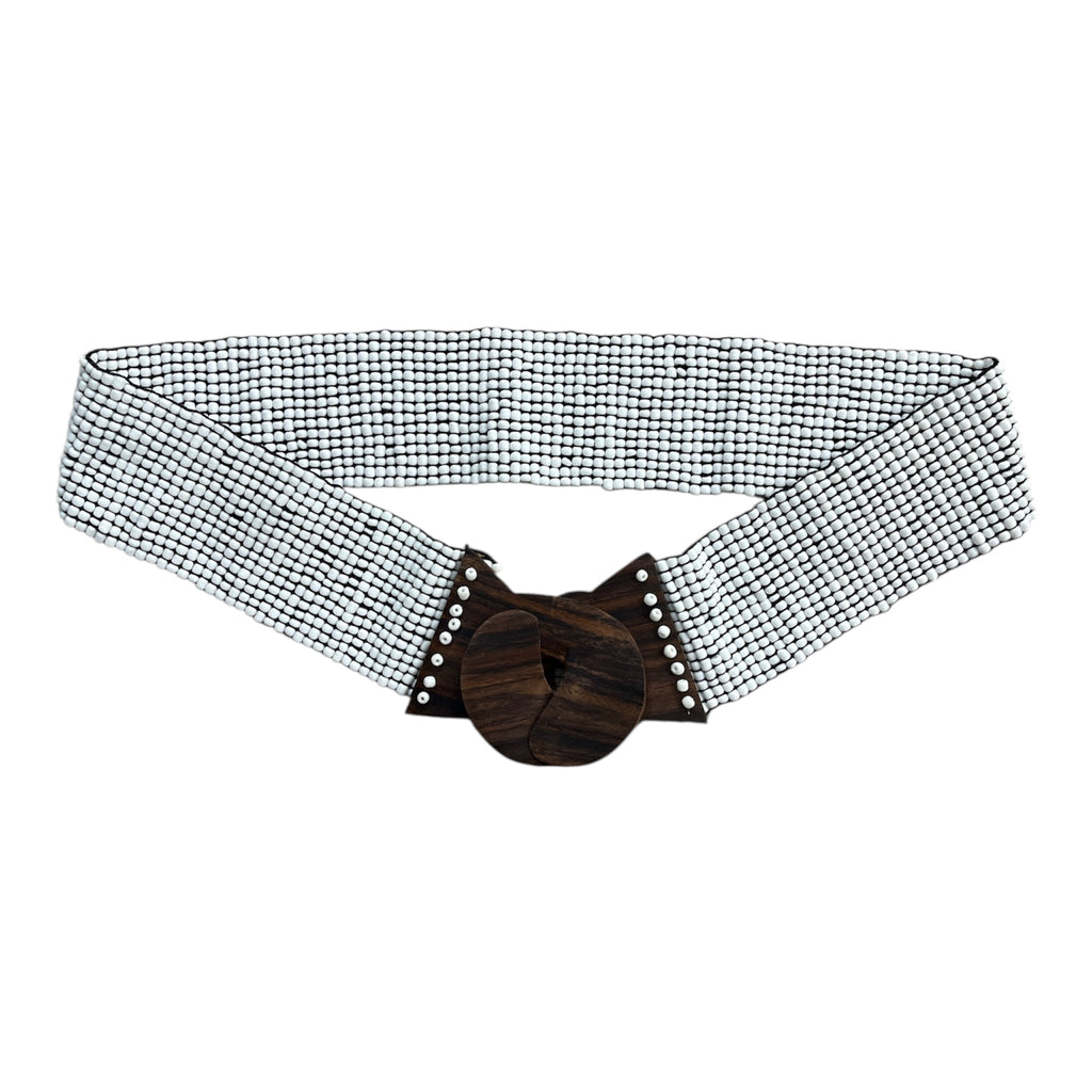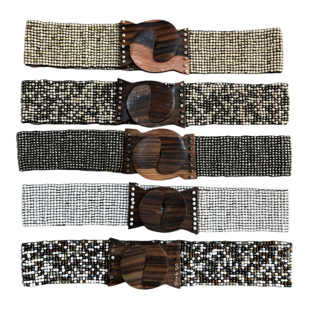 This handcrafted beadwork belt combines traditional artistry with modern design, featuring an elastic band for a comfortable and adjustable fit.