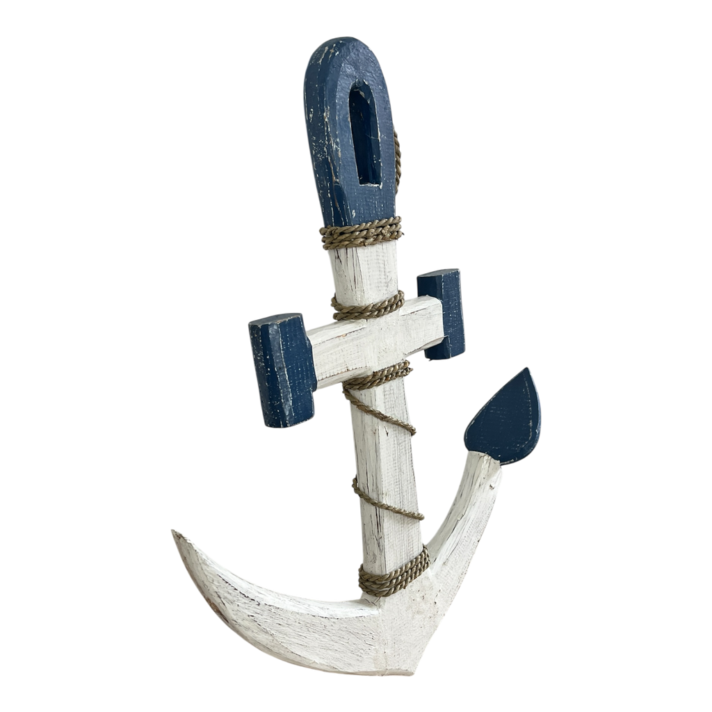 The Beach House Anchor wall hanging, crafted from wood, measures 45cm in width and 50cm in height, making it a striking focal point in coastal-inspired decor. Its authentic design evokes the timeless charm of seaside living, perfect for adding a nautical accent to any room. This piece not only enhances visual appeal but also brings a sense of calm and connection to the ocean, ideal for beach houses or anyone seeking to infuse their space with maritime character. Durable and tasteful, it complements both rustic and modern interiors seamlessly.