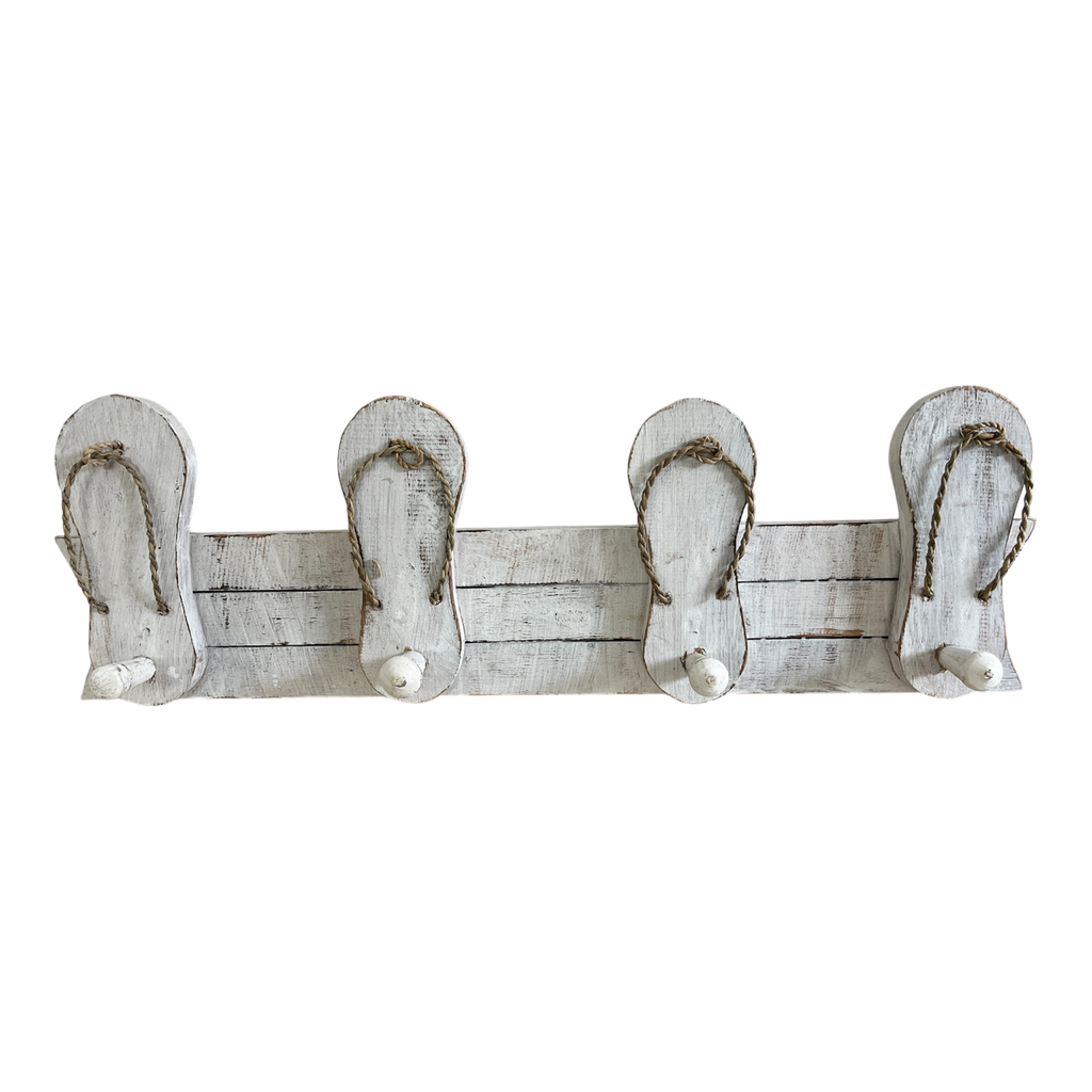 he Flip Flop Beach Sandals Wall Hooks are expertly crafted from wood, designed to add both function and coastal charm to any space. Perfectly suited for organizing swimming pool or beach towels, these hooks provide a convenient and stylish solution for keeping your essentials within easy reach. Their playful flip flop design evokes a relaxed seaside atmosphere, making them an ideal addition to beach houses, pool areas, or bathrooms.