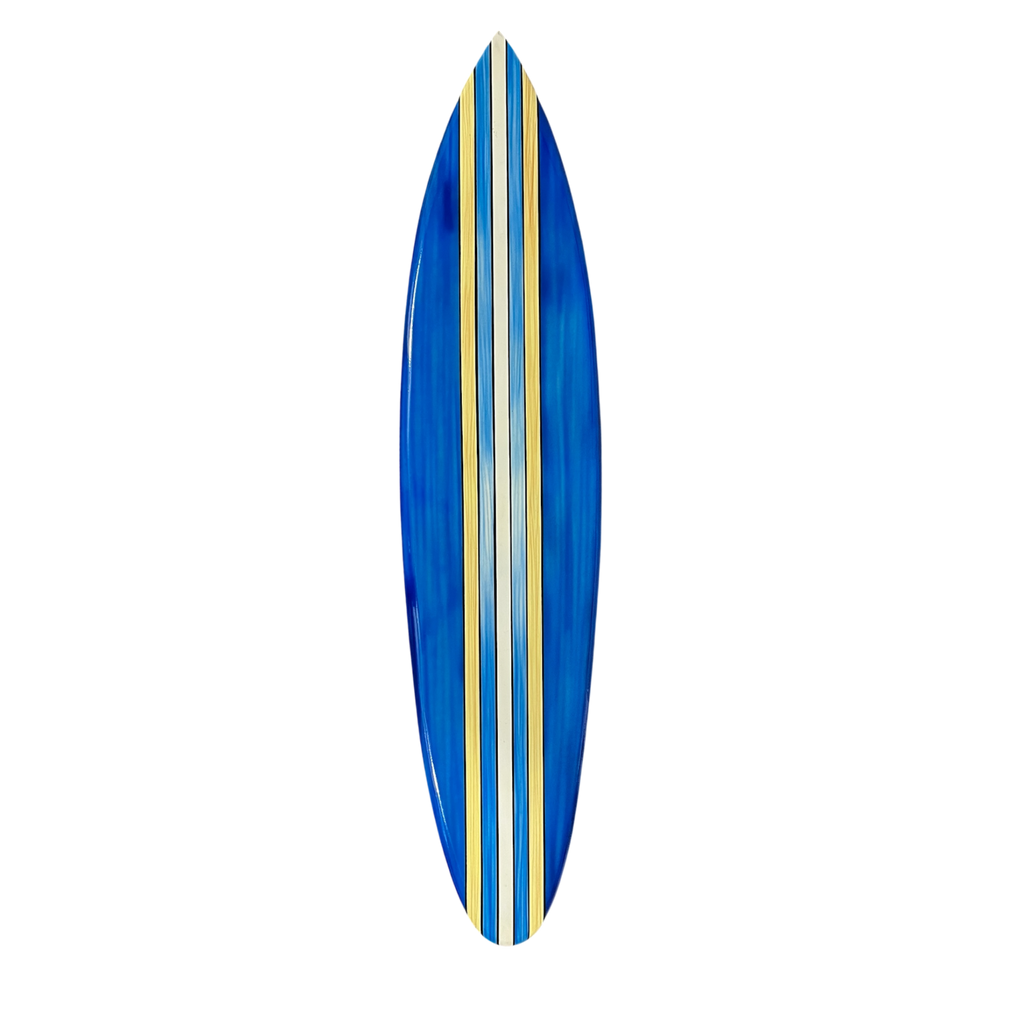 Measuring 150cm x 33cm wide, it serves as a striking decorative piece that adds a touch of beach-inspired elegance to your home or office. Perfect for surf enthusiasts or those seeking a unique statement piece, this surfboard art transforms walls into a showcase of refined seaside charm.